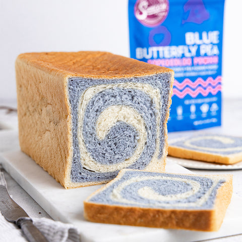 Looking to add some colors at the breakfast table? We got just the recipe for you to go round and round then always come back for more! This soft & fluffy Blue Butterfly Pea Shokupan loaf has swept off of our feet with its fantastic swirl, and the stunning bold swirl of hypnotic blue is achieved by using Suncore Foods® Blue Butterfly Pea Powder. If you incorporate acidity in your , it will transforms the bread into a rich royal violet color. No extra taste. Just so much fun to eat.