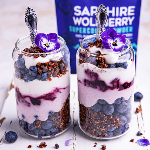 This extra-special yogurt parfait creation is almost too pretty to eat and as mesmerizing as they are download delicious! Layered in between pillowy spoonfuls of Sapphire Wolfberry Yogurt made using Suncore Foods® Sapphire Wolfberry Powder to create the velvety royal purple color, you'll find everything from sweet & crunchy Cacao Nibs Chocolate Granola to rainbow of colorful goodness. Easily customizable and perfect for meal prepping as a breakfast, snack or even dessert. Get really creative with them and let us know how you are using your Suncore Foods® products.