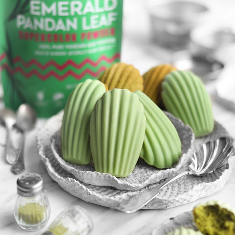 If you like regular madeleines then you're going to love these Emerald Pandan Madeleines! A twist on the classic French Madeleines, these are coated with Suncore Foods® Emerald Pandan Leaf Powder for the perfect green and matcha-vanilla fragrant finish. Go get yourself some of this buttery and delicious treat.