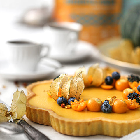 Just a couple days away from the big family dinner! If you're wracking your brain to bring something unique and memorable, try this unbelievably easy and straightforward recipe for Harvest Pumpkin & Baked Sweet Potato Yam with Shortcrust Tart. There are so many things to look forward to with traditional Thanksgiving dinners, and pumpkin pie is definitely one of the most anticipated. With a super crumbly shortcrust, a whole lotta pumpkin, and Suncore Foods® Autumnal Baked Sweet Potato Yam & Yellow Goldenberry Powders, this beautifully golden tart will definitely not disappoint!
