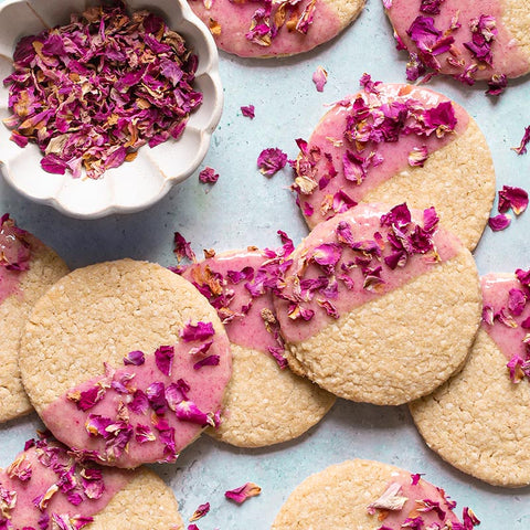 5. Spoon icing over the cookies however you’d like and sprinkle with Suncore Foods® Rose Petals. Allow the icing to set for about 20-30 minutes.