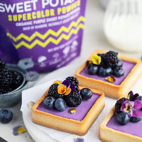 Dessert is like a feel-good song, and the best ones make you dance! Our delightful Purple Sweet Potato Mini-Tarts will surely make your tastebuds sing and your body groove. With a touch of Suncore Foods® Purple Sweet Potato Powder, these tarts luxuriate in an elegant and calming purple hue. It's filled with a creamy and airy mousse that complements the soft crumbliness of the crust. Trust us, it's hard to stop at just one mini-tart! This mousse is a must!