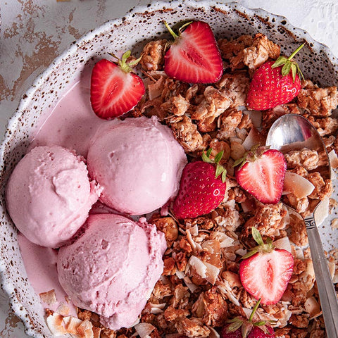Strawberry Ice Cream with Toasted Quinoa Hemp Granola
