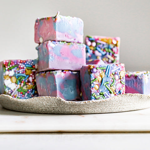 Sending great happy magic through these delicious Freezer Unicorn Tie-Dye Fudge! An enchanted magic spell that gives you an instant boost of marvelous energy from the extraordinary colors and fun! These enchanted and super fun fudges used our plant-based Suncore Foods® Aqua Blue Spirulina, Ebony Carrot, and Pink Pitaya Powders, creating a burst of wonderful unicorn colors that we love to try!